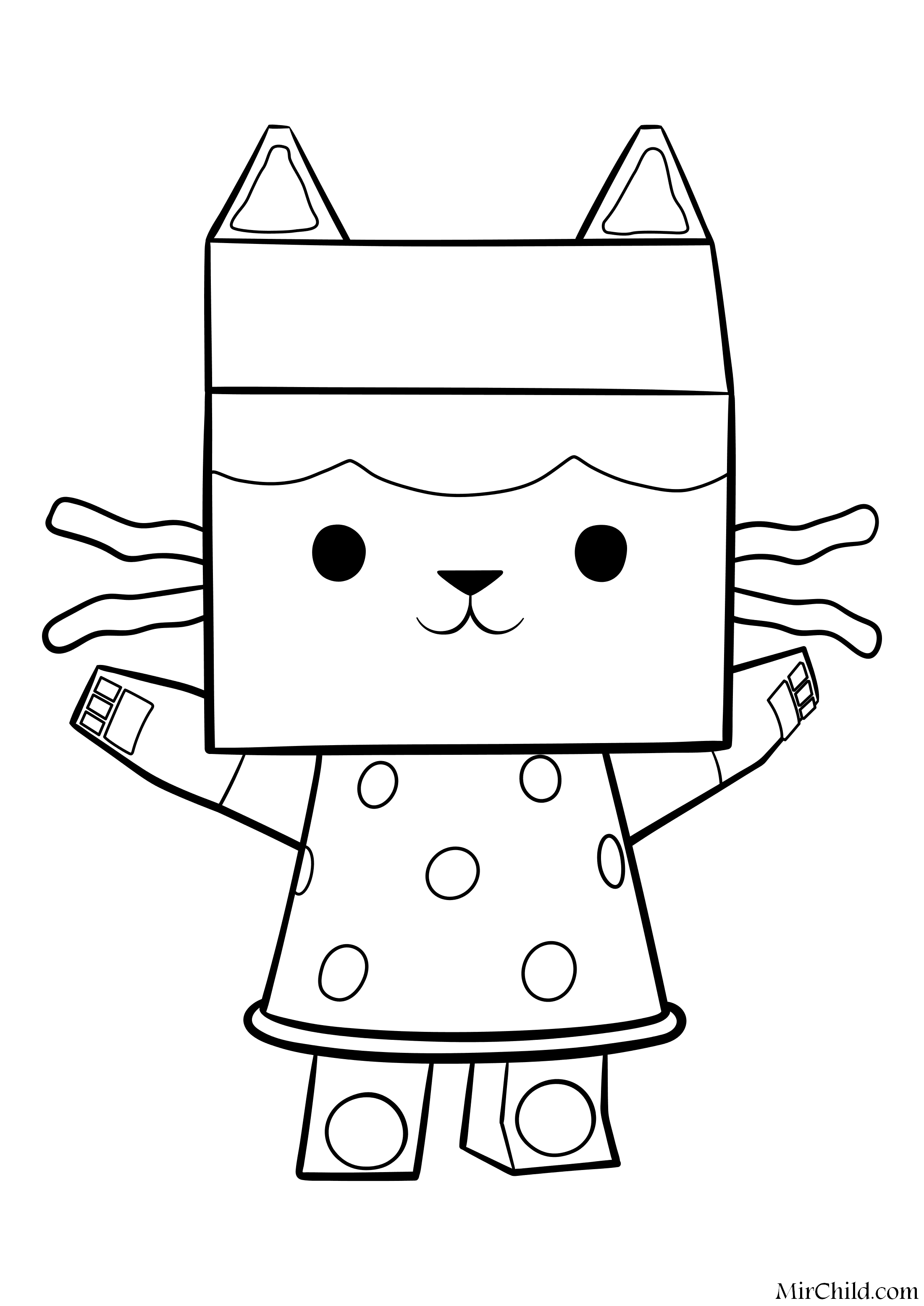 Раскраска - Бэби Бокс любит мастерить поделки (англ. Baby Box loves making crafts) из мультфильма: Кукольный домик Габби (англ. Gabby's Dollhouse).