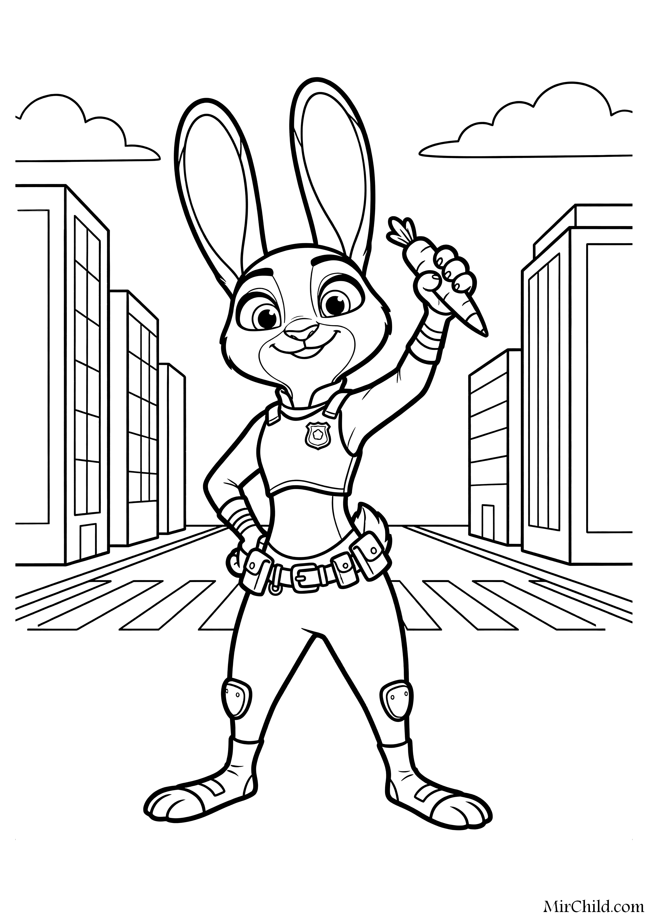 Раскраска для детей - Джуди Хоппс готова к патрулированию (англ. Judy Hopps Ready for Patrol) из мультфильма "Зверополис 2" (англ. Zootopia 2) 2025. Скачать и распечатать бесплатно.