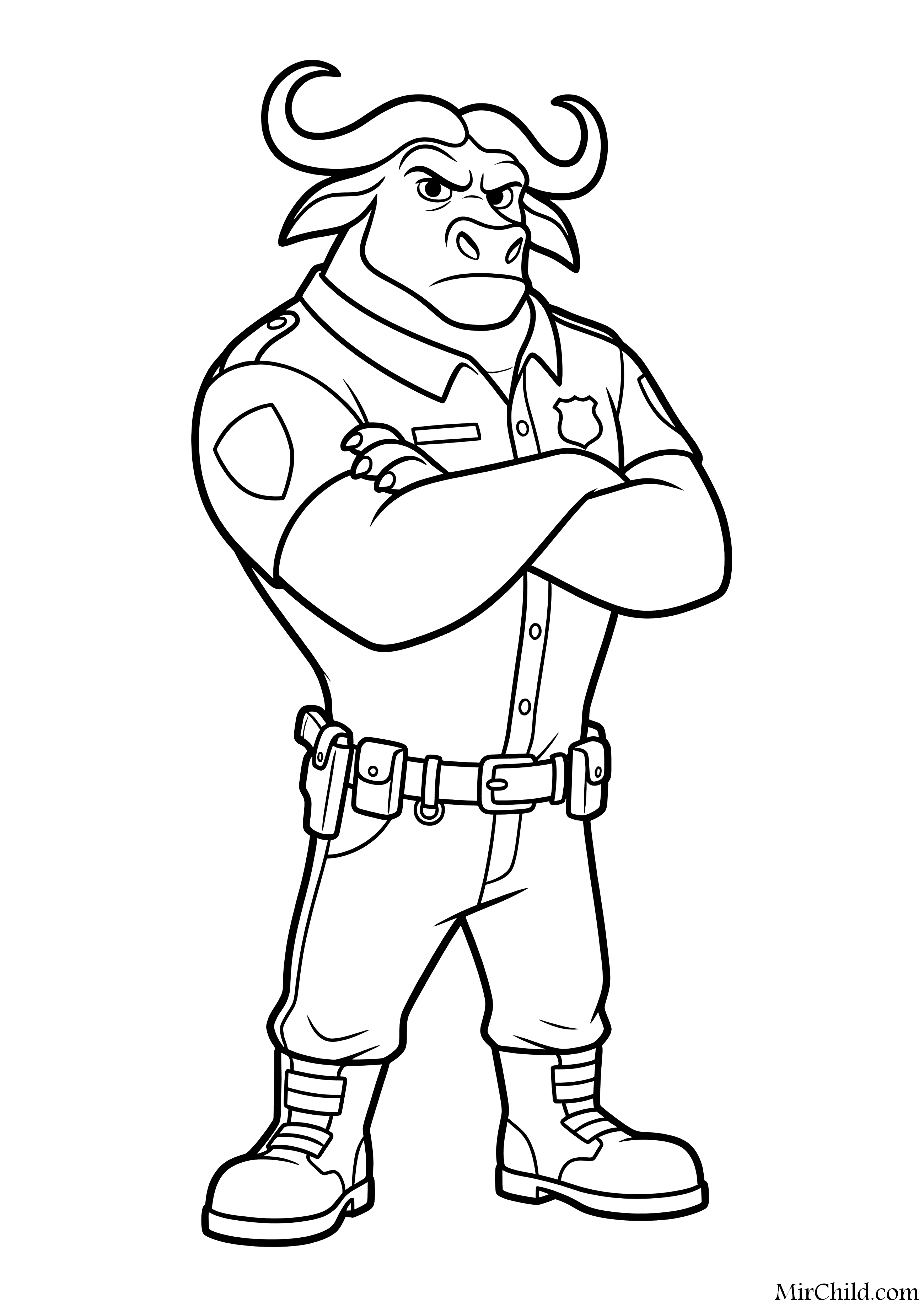 Раскраска для детей - Капитан Буйволсон скрестил руки на груди (англ. Chief Bogo Arms Crossed) из мультфильма "Зверополис 2" (англ. Zootopia 2) 2025. Скачать и распечатать бесплатно.