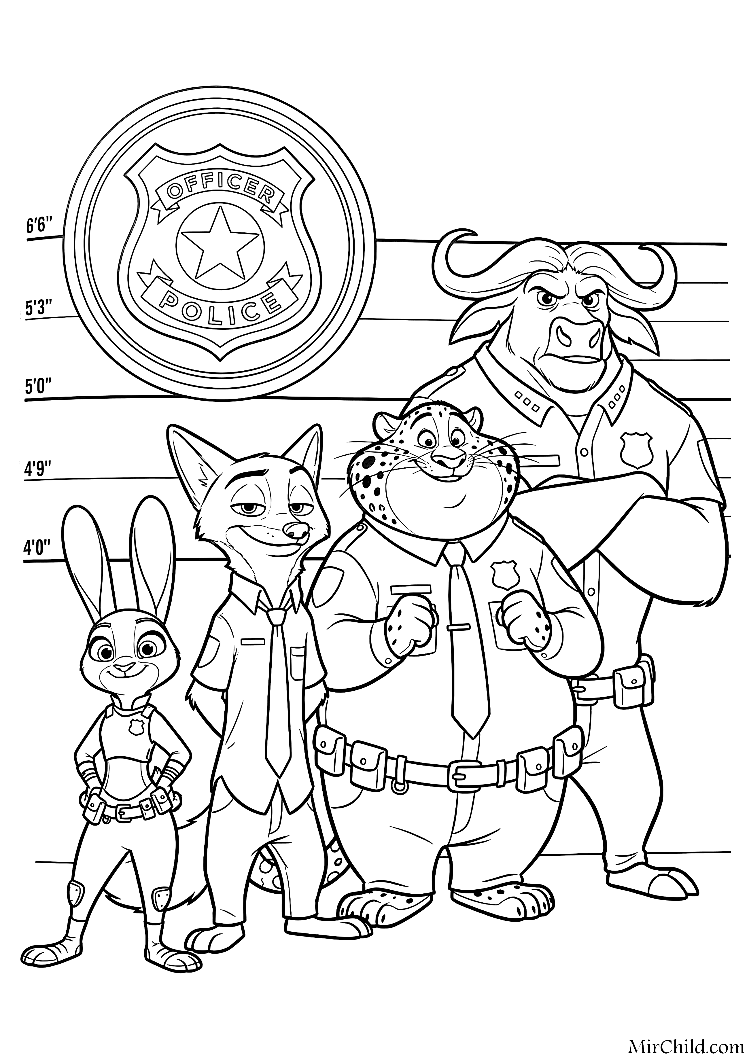 Раскраска для детей - Построение отряда полиции Зверополиса (англ. ZPD Squad Lineup) из мультфильма "Зверополис 2" (англ. Zootopia 2) 2025. Скачать и распечатать бесплатно.